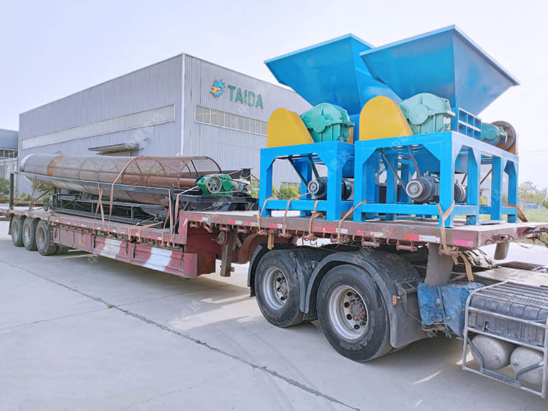 600型撕碎機,配套10米長交易滾筒篩發貨
